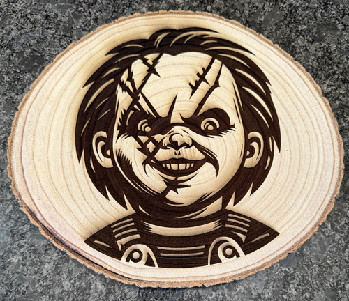 Each wood engraved item is unique as each piece of material is different. I can put nearly any image or text on wood. Depending on the image, they may even have almost a 3D appearance.